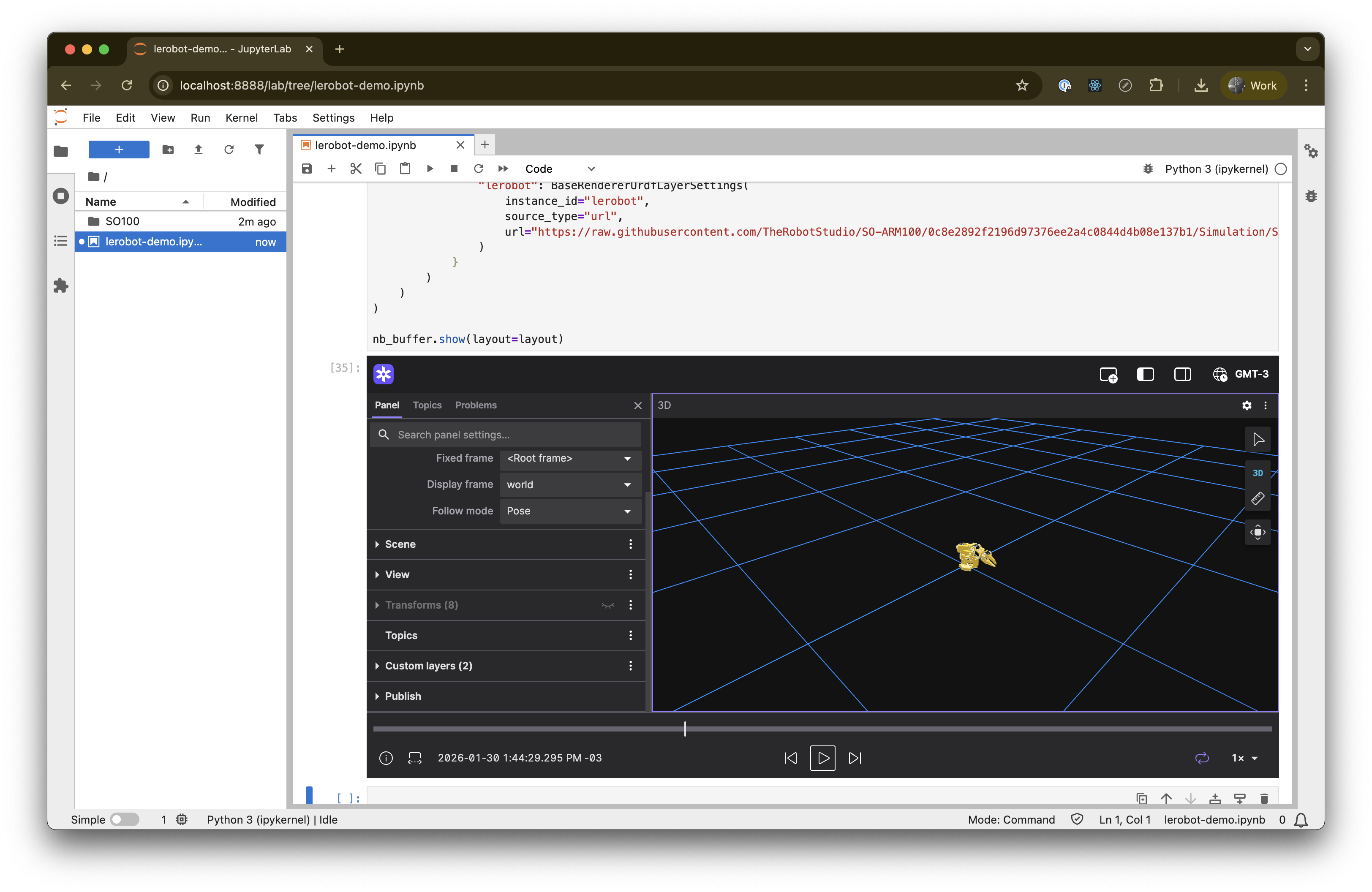 We wanted to remove that friction. Using the Foxglove SDK, you can now pass data directly from your notebook kernel to a Foxglove viewer running inside the notebook UI. It works with the same layouts you already use in the full app, supporting buffered data. Under the hood, it’s powered by Anywidget, making it portable across notebook environments.