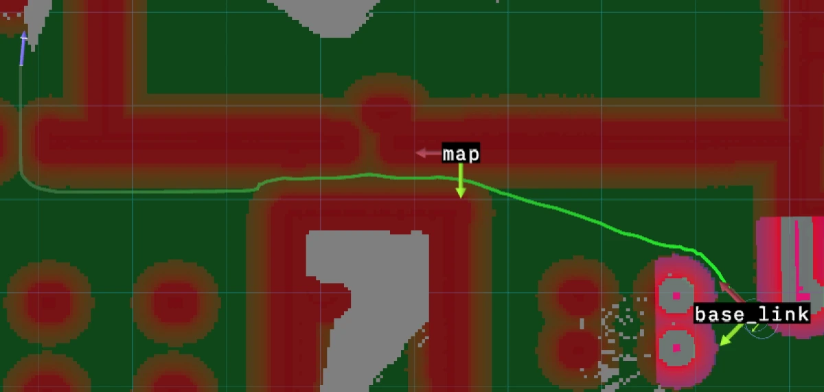 At this point, the action servers begin to work. The planner creates a plan, which the controller receives, and then starts commanding the robot to move.