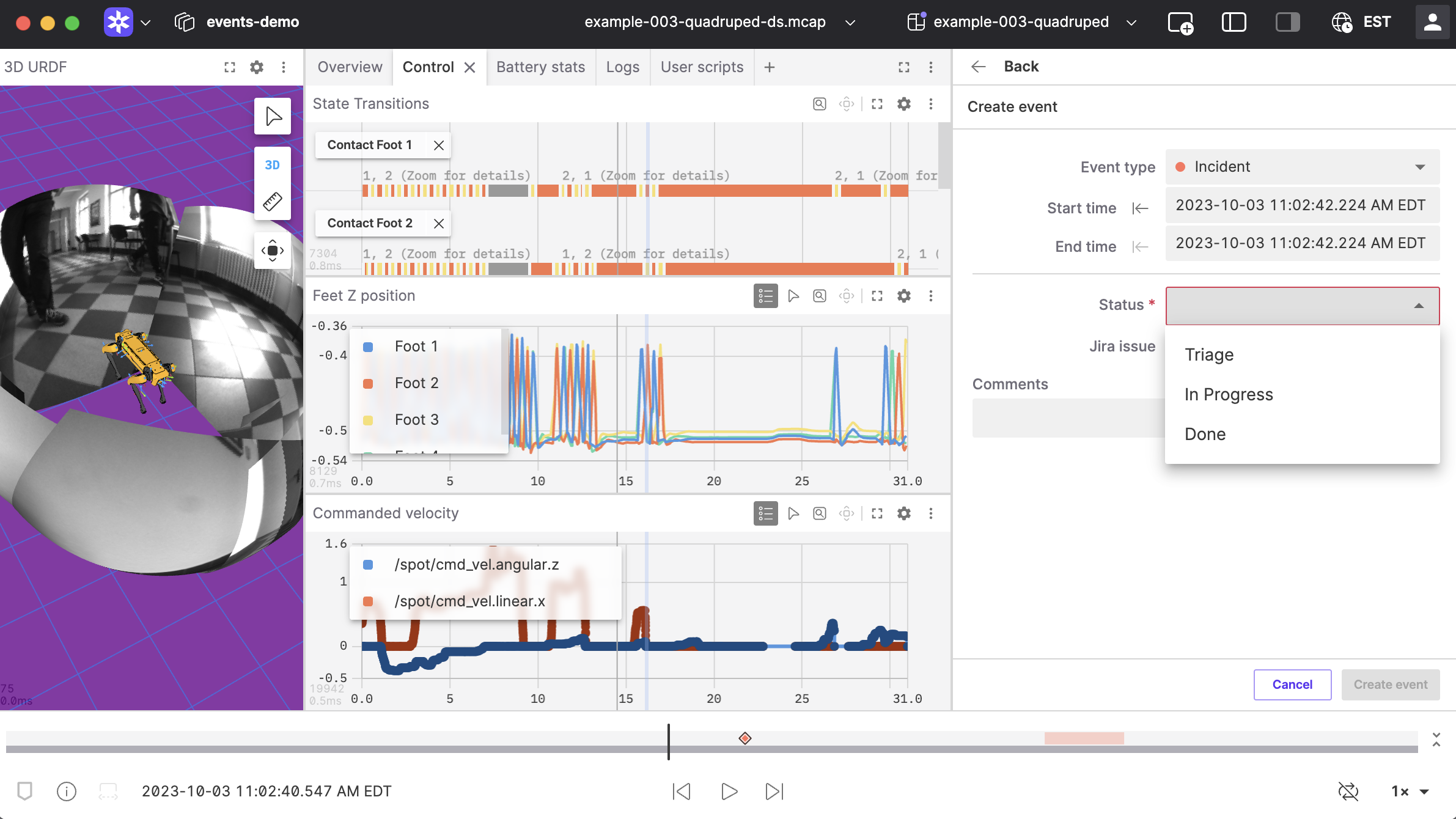 Most teams already have some notion of “incidents” in spreadsheets, tickets, or internal tooling. The problem is that those systems are usually disconnected from the data you need to debug. Events bring those answers into the same place you play back and analyze robotics data: a specific recording, an exact time range, and the context you’ll want later when you’re triaging issues or measuring trends.
