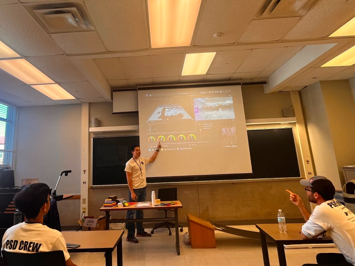 Team members looking at their Foxglove UI on the projected screen.