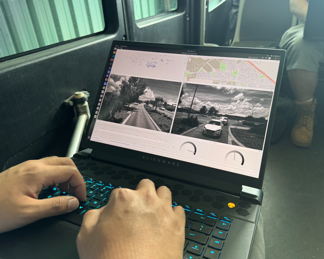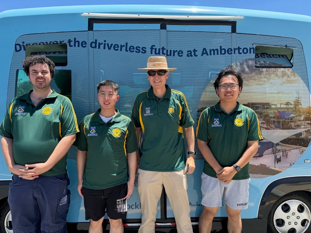 In 2023, after two years of on-campus autonomous driving trials, the team achieved a critical milestone: securing approval from the WA Department of Transport for public road testing. Supported by DyFlex Solutions, C.D. Dodd Metal Recycling, and UWA’s School of Engineering and Business School, the team launched autonomous shuttle trials in Eglinton. The shuttles traverse a challenging single-lane route from office buildings to the beach, providing an ideal environment for real-world autonomous testing. This scenic path combines complex navigation scenarios with varying terrain, enabling the team to validate and refine their systems under real operational conditions.