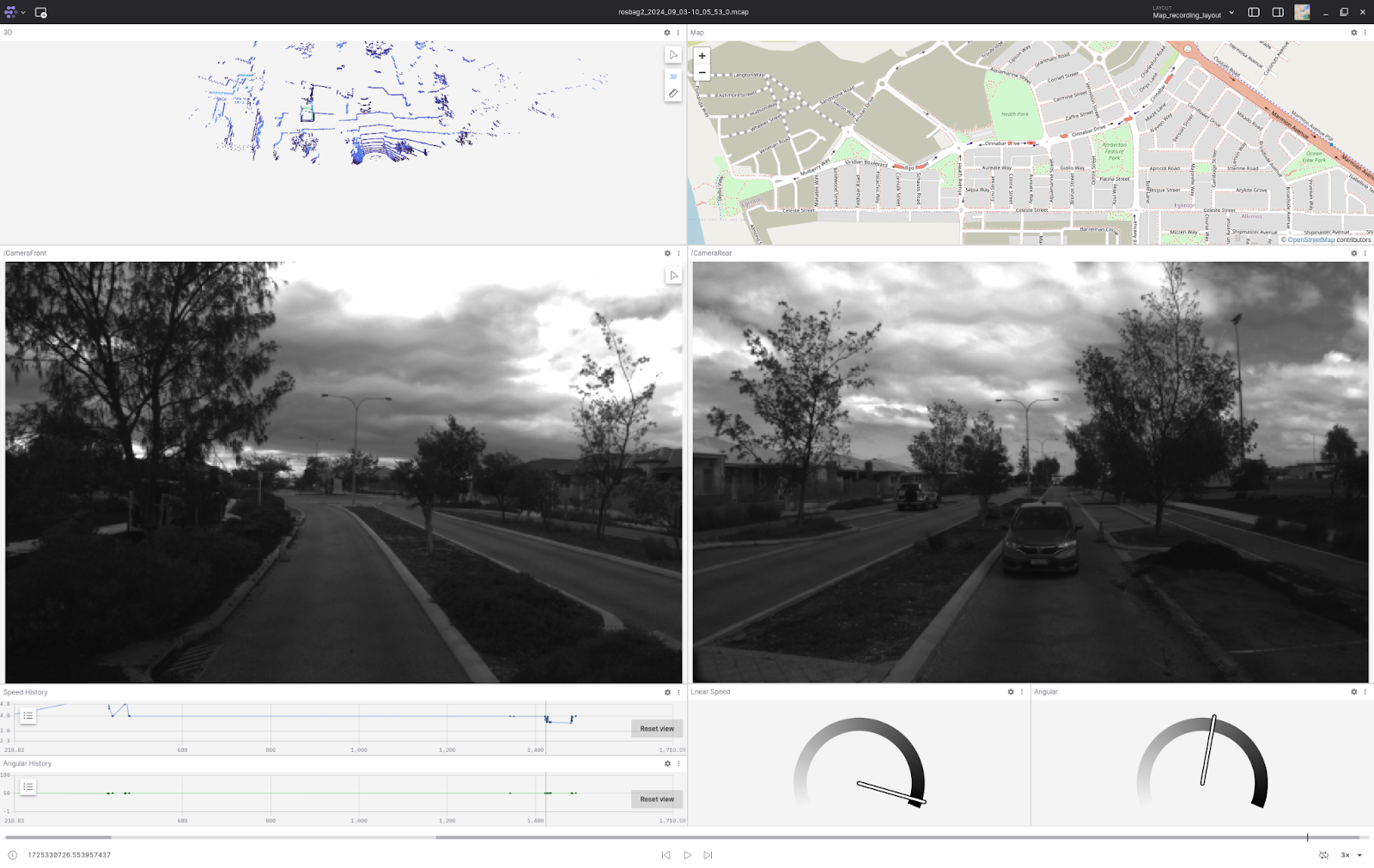 The team’s custom Foxglove layout used for data visualization and analysis integrates maps, lidar feeds, camera views, and system status indicators into a unified view. This comprehensive data visualization simplifies diagnostics, enabling the team to pinpoint anomalies and refine system behavior, ensuring safe and efficient shuttle operations. As shown in Figure 3, this comprehensive view supports precise diagnostics, enabling the team to enhance the shuttle’s performance and reliability on future trips.