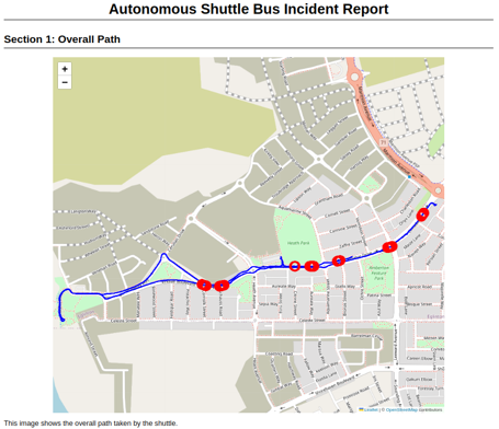 Section 1 of an autonomous shuttle bus incident report.