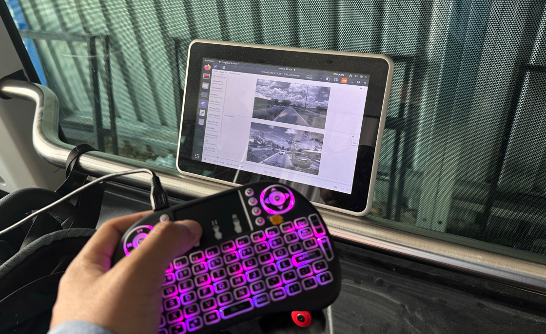 Onboard the autonomous shuttle, a compact NVIDIA Orin PC powers real-time debugging and visualization with Foxglove.