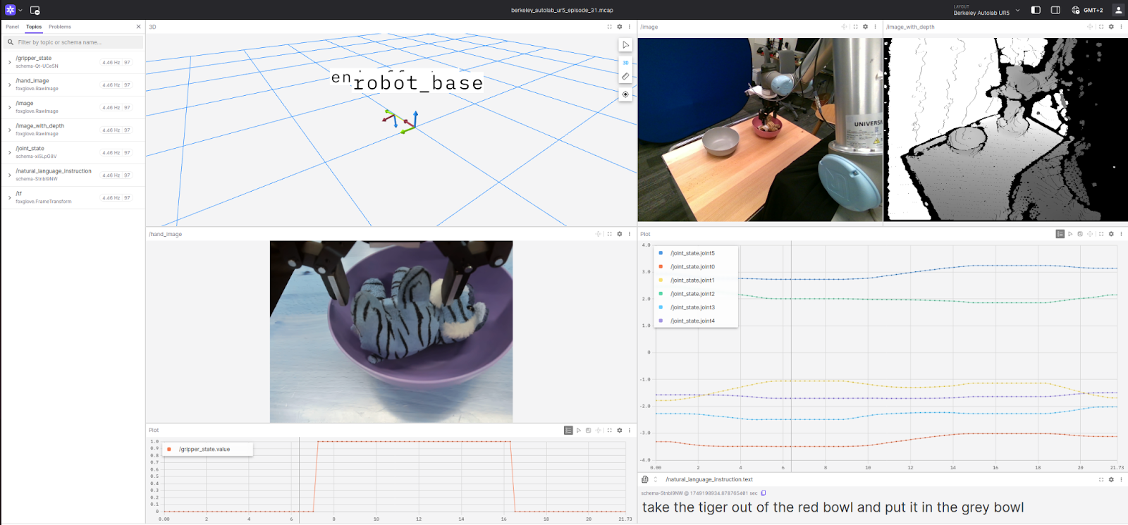 Fig. 1 Berkeley_autolab_ur5 data visualized in Foxglove.